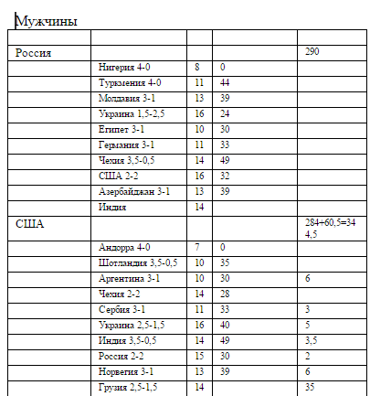 ODESSA: V_A_L: | Bulldozer: Как норвежцы умудрились занять 5-е место, если у них почти половина членов команды не выиграла ни одной партии, а лидер выступил на 52 пункта слабее своего рейтинга. :) | Насчет "почти половины" Вы преувеличиваете. Скорее, четверть. Ведь норвежцы практически всю олимпиаду играли постоянным составом.