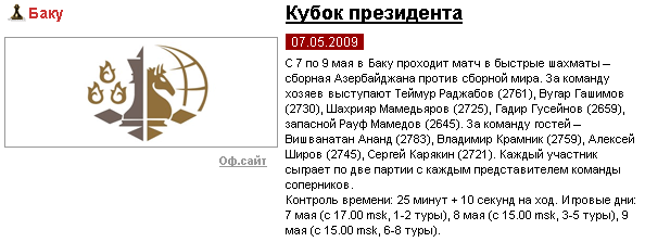 Топалов-Камский-09 – 6,28 (на момент начала) |