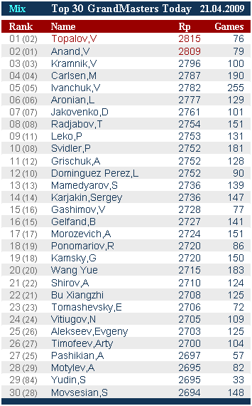 Peter Heine Nielsen – 1973 г.р, Дания, ФИДЕ-рейтинг на 1 апреля 2009 – 2668 Elo, рост на год +39 Elo. |
