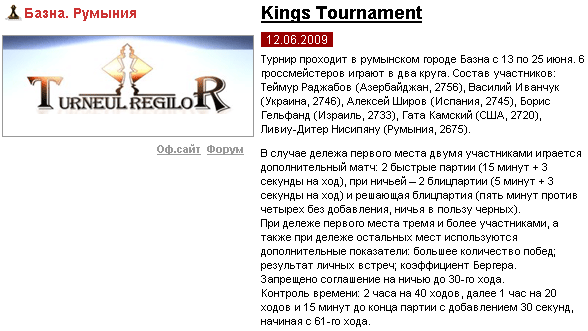 состав очень неровный, но, предварительно, т.к. за счет присутствия Домингеса и Тимофеева class >1,00, Мемориал Капабланки проходит (!) в CLASS-Tournaments 2009 |