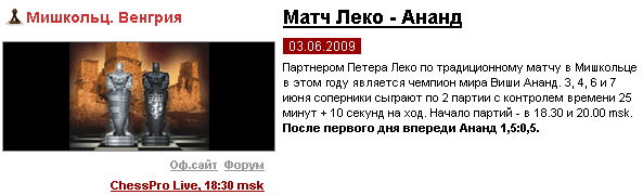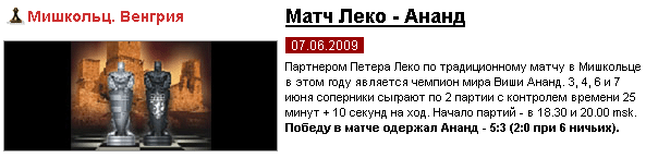 Класс начавшегося сегодня рапид-матча Ананд-Леко - class = 7,75 (!)
