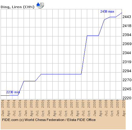 Дин Лижэнь - 2652 Elo, 70-я позиция в общем и 11-я в юниорском списках годовых перфомансов