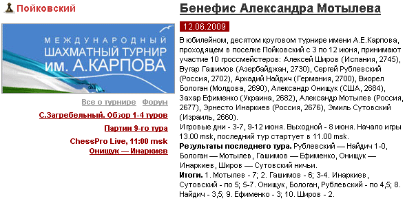 турнир проходит в CLASS-Tournaments 2009