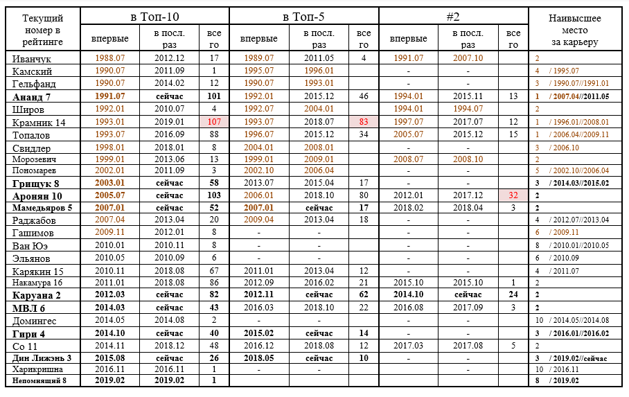 А, я ж захожу от случая к случая, поэтому уже забыл, что это с 2010 года данные, потому и удивился что Аронян недалеко от Крамника.