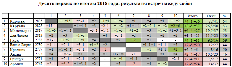 В качестве напоминания - прошлогодняя таблица (турнирные успехи в 2017-м)