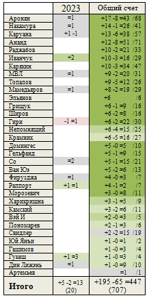 Мало играют в классику топ-игроки после пандемийной паузы вообще, и друг с другом в частности. Поэтому в традиционной таблице смысла немного.