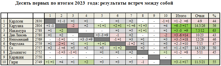 Своя польза и в погодовой статистике Карлсена с элитой - такие таблички я раньше тоже приводил.