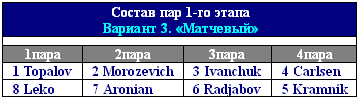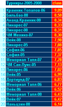 Топалов-Камский-09 – 6,28 (на момент начала) |