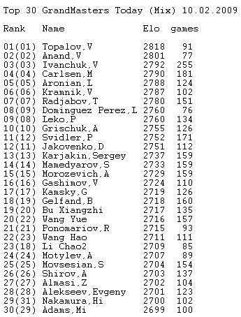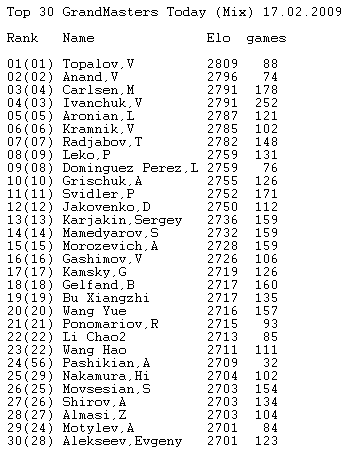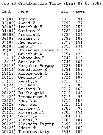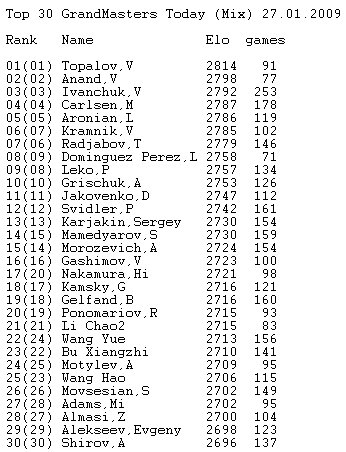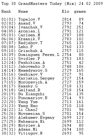 Топалов 2816 – еще +2 к результату недельной давности и новый максимум !