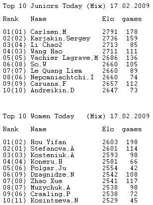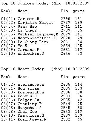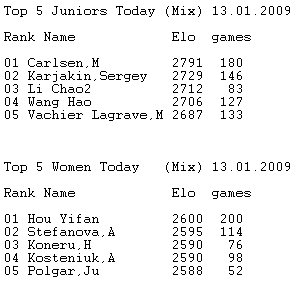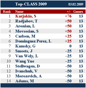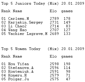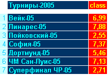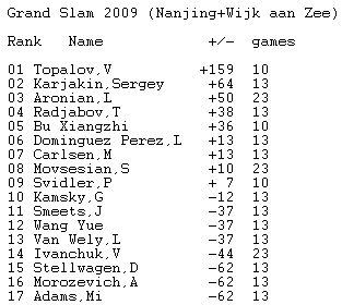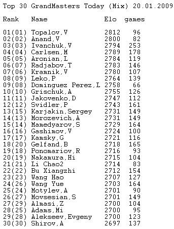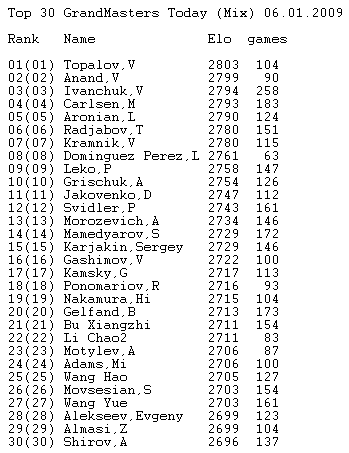 Текущий годовой перфоманс Топалова на 20 января = 2812 Elo, это пока лучший годовой пероманс за то недолгое время, что существует эта классификация.
