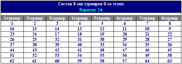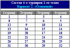 Состав турниров 1-го этапа определяется по следующей таблице: