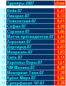 Для полноты картины, турниры последних 4-х лет далее по списку вплоть до класса 1,50: