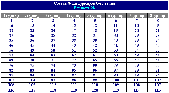 Состав турниров 0-го отборочного этапа определяется по следующей таблице: