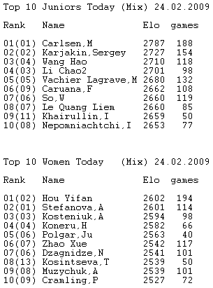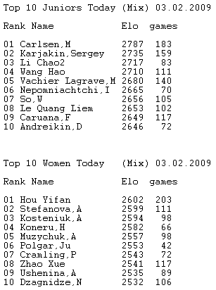 Потенциально выше также стоят Qin Kanying и Chiburdanidze, но они провели меньше необходимых для попадания в классификацию 24 партий.