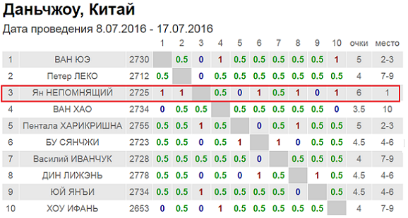 Болельщики Непомнящего не сомневались, что ему по силам выиграть супертурнир. Всего лишь 2,5 месяца назад Ян с отрывом убедительно победил в турнире 20-й категории в Китае.