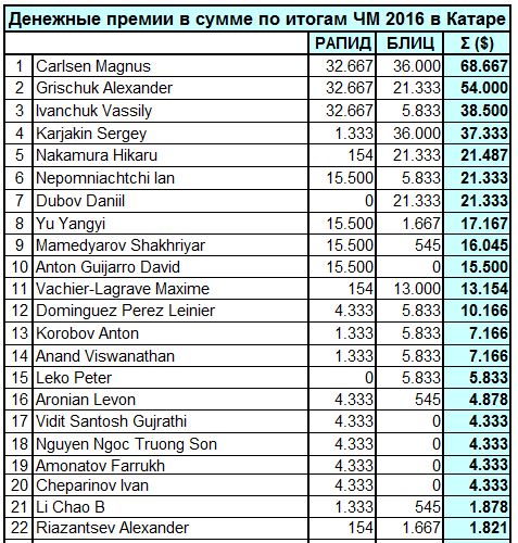 | Rom77: Кстати, если верить Chess-results.com то Карякин опередил Карлсена и по второму и по третьему доп. показателю. То есть по Бухгольцу и личным встречам. |