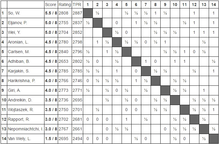 19 до Карлсена, 11 до Каруаны, которому всего-то 8 до Царя горы.