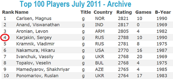 | Jacob, а в какой момент Карякин был четвёртым, по Вашей ранжировке? |