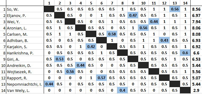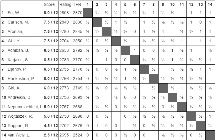 Победа Со была бы справедливой и объективной. Магнус на второе место наиграл, но первое.. уже не по игре, а как случайный подарок. Хотя, конечно, последний тур покажет, кто победит.