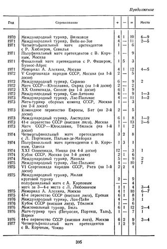Спасибо. Особенно показательно, что - если верить распечатке - в чемпионатах СССР "любимый результат" Тиграна Вартановича встретился один раз - при этом он с ним умудрился в 1973 году разделить 2 место! Понятное недоверие привело к фактчекингу - сканер обидел Тиграна Вартановича, он в том (экстраординарном по составу) турнире выиграл не одну,а 4 партии. Так что - ни разу. А вот +8 встречалось трижды (привет, Ларсен!) |