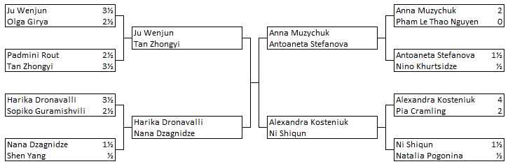 По ходу первых десятиминутных партий был уверен, что в четвертьфинале будут Пиа Крамлинг и Ольга Гиря. Но всё-таки Александра Костенюк и Цзюй Вэнцзюнь прошли дальше.