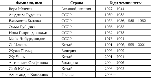 | Забавно, с 1991 года идет тенденция чемпионок: Китай - не Китай - Китай - не Китай ... |