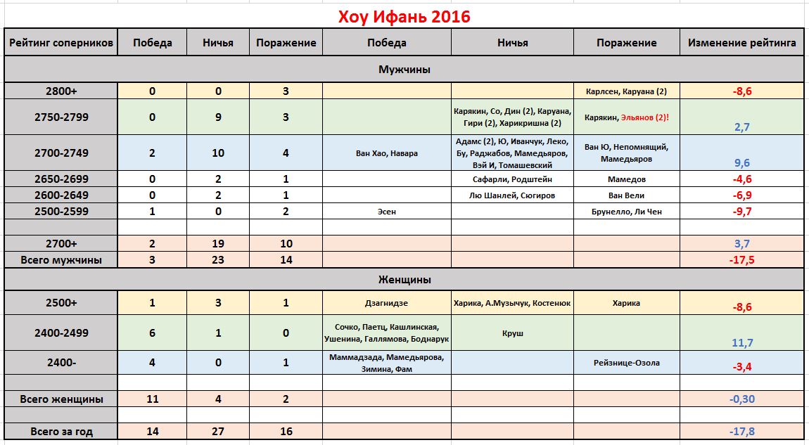 1. Итоговые +2=19-10 с 2700+ принесли Хоу прибавку в 3,7 пункта. То есть с серьезными соперниками она отыграла на свой рейтинг.