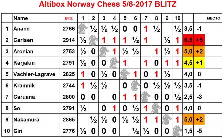 Где можно смотреть блиц: http://norwaychess.no/en/blitz-chess-pairings-results-2017
