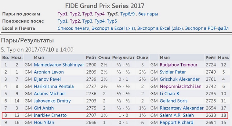Вот ахинея с результатом Инаркиев-Салем на оф. сайте: Инаркиев проскочил контроль, не дал мата в один ход (!), но уж согласиться на ничью никак не мог.