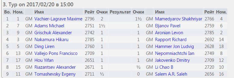 Одна победа в туре всё-таки есть: Накамура победил Раппорта. Эльянову в партии с Адамсом очень повезло, что Майкл Адамс упустил победу, остальные партии пока не смотрел.