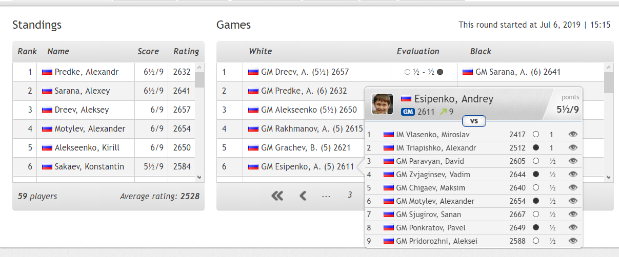 А что происходит в Ярославле с Федосеевым? Разыгрался после стартовой осечки, вот только черными побеждать не получается (показалось, что Фрольянов, Сарана и Рахманов сушили как могли). Завтра выиграет у Предке - получит хорошие шансы на выход в суперфинал. Надеюсь, что он Александра снесет . |