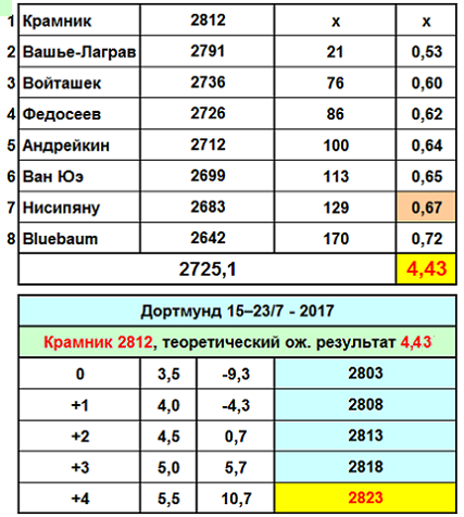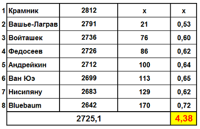 LatchezarS: "Нисипяну 2683 129 0,62" правильно 0,67 Ожидаемый результат Крамника : 4,43 , а не 4,38.