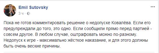 о том, например, что арбитр не собирался отстранять Ковалева от игры (!)