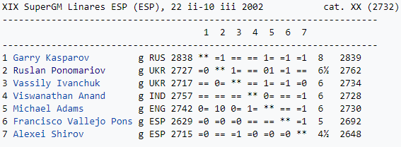 Пономарев в 2002 году был 6-7 шахматистом мира. При этом, если исключить Каспарова с Карповым, которые отказались от участия, от остальных вообще не отставал (9 очков от Ананда, 2 от Топалова). Так что, если абстрагироваться от идиотской системы, победителем он был достойным. В отличие от.