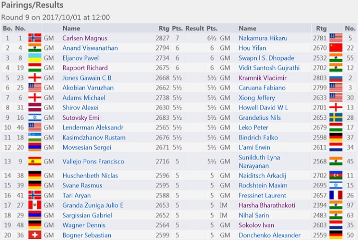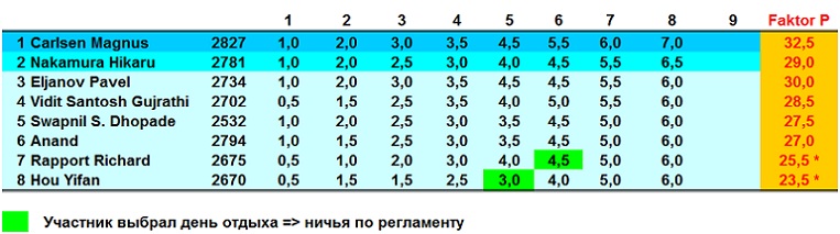 А шансы выиграть турнир только у Карлсена и Накамуры. |