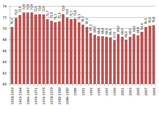В 90-х младенческая смертность была около 2%, и её [кратковременный] рост был примерно на 0.25%, что соответствовало снижению ОПЖ на 2 месяца (вклад пост-младенческой детской смертности ещё ниже).