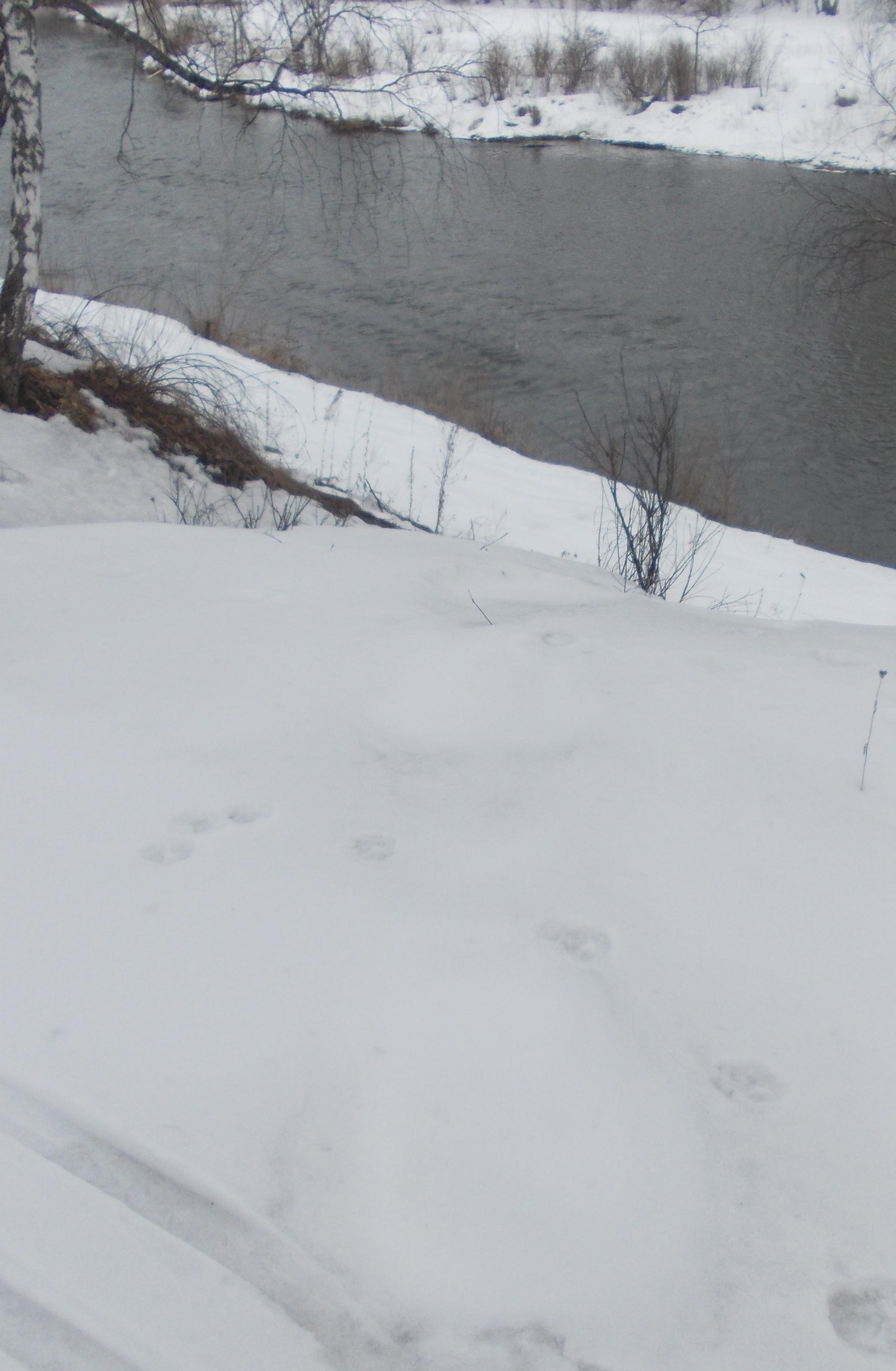 Но когда я увидел это "скошенное" дерево, то был в полной уверенности, что это работа бобра... или какого-то речного животного, типа выдры. Тем более, что от берёзы к реке шли какие-то странные следы. Не мелкие, справа налево, а здоровые вмятины по центру. ))