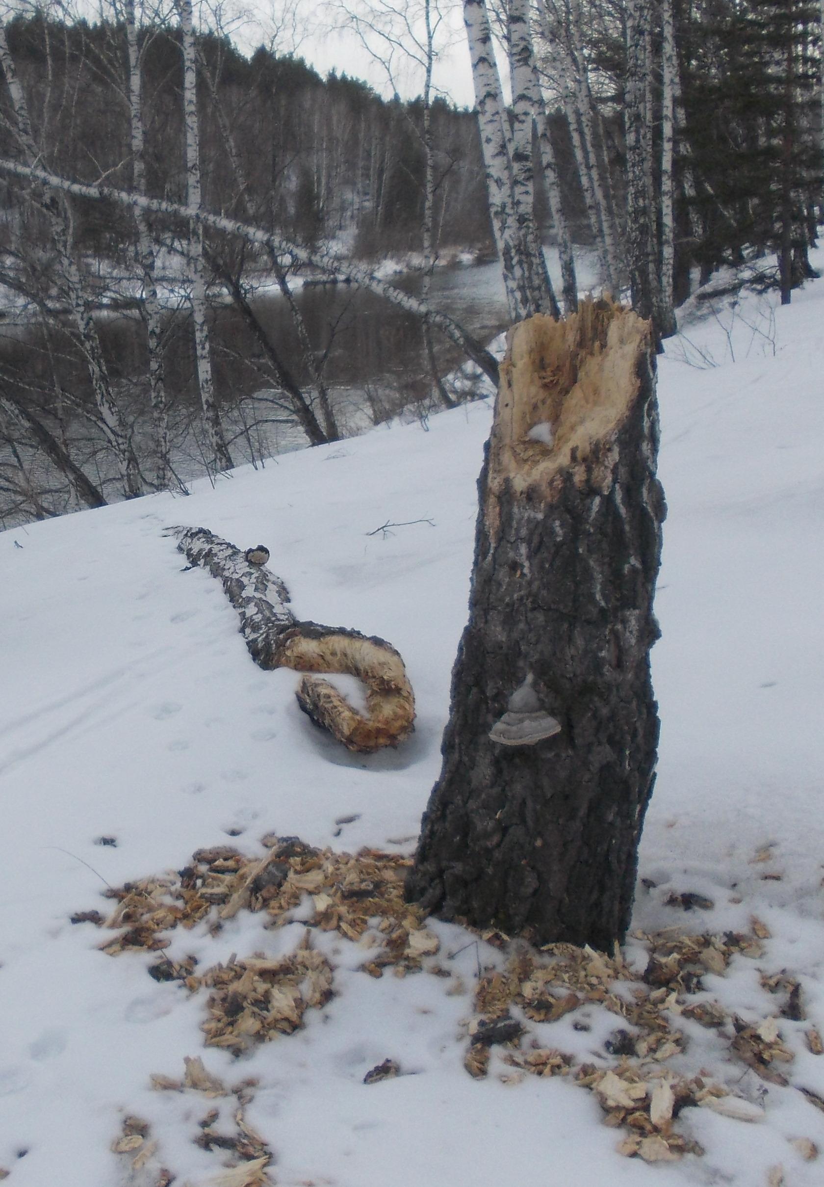 И лишь затем, продолжив свои прогулки по зимнему лесу и найдя много сваленных таким образом старых берёз (кстати, на почтительном расстоянии от реки) понял, что это проделки дятлов. Я просто видел их разрушительную долбёжку.