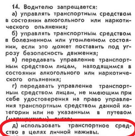 Имхо, эта норма в первую очередь работала не против частников на своих машинах, а против водил на государственных. Но и против них мало применялась, имхо
