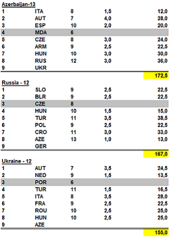 Сейчас у России и Украины почти равный Бергер, а у Азербайджана более чем на 20 очков больше ...