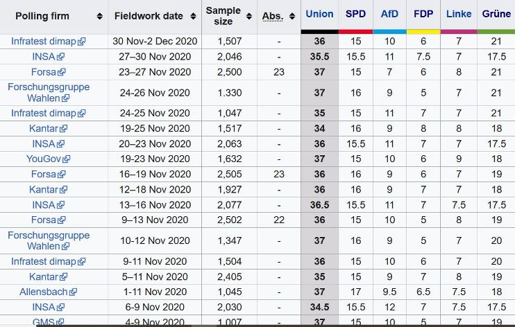 Опросы общественного мнения в Германии (под общенациональные выборы 2021 года) за ноябрь месяц.