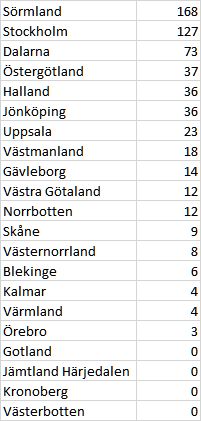 В Стокгольме уже 127 смертей на 1М, в Сёрмланде 168. Это очень много. Эти два региона самые опасные, остальные значительно менее, по крайней мере, по официальным данным. Есть 4 региона с нулевой смертностью
