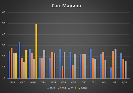 Похоже, в Сан Марино сосчитали просто всех. Официальная смертность от ковида за март - 26 человек. Полная - 50. Страшные цифры по сравнению с другими этим и вызваны. А так получается меньше 0,1% населения (0,07%, если учтены действительно все), то есть картина вполне терпимая по сравнению с Италией.