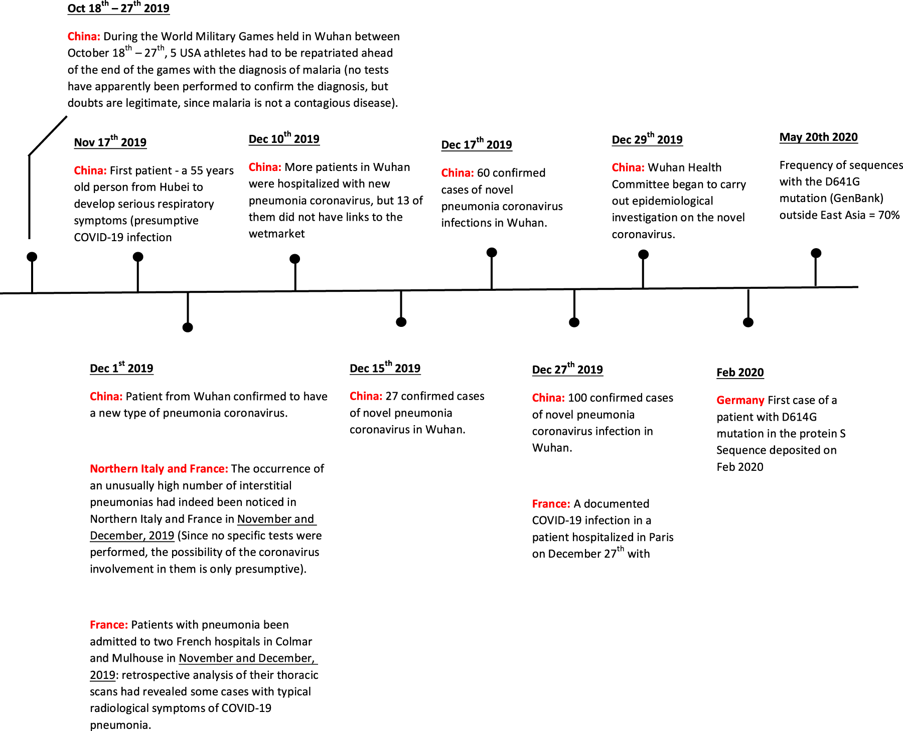 The timeline of the origin and development of the present pandemic emerges from the data and the discussions above. The COVID-19 disease was present in China—and also in Europe—well in advance of its sudden explosion in Wuhan at the beginning of this year. Nevertheless, the disease had remained in a dormant state because the other factor which was essential for its vigorous awakening, the local amplification effect, was absent. In hindsight, it could be speculated that it was a matter of time: sooner or later, the explosion was bound to happen.