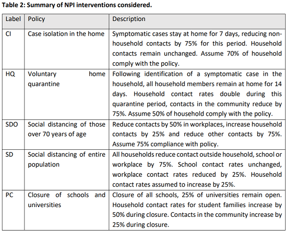 Напоминаю, вот карантинные методы, рассматриваемые у Фергюсона: