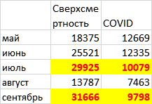 Итого у меня получилась сверхсмертность за 5 недель сентября+ примерно 1600 чел (чуть поменьше, чем в июле-августе).