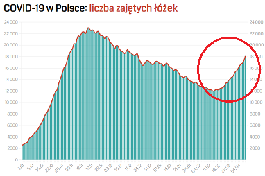 В октябре ещё в Варшаве развернули госпиталь на 500 мест (с планами расширить до 1200) на национальном стадионе. В разгар ноябрьского кризиса там было занято 30 (тридцать) коек при том, что остальные столичные госпитали отказывались принимать пациентов. Это всё не недостатки планирования, а просто декоративный проект, на который реально не хватало персонала (но который входил в общее число ковидных коек).