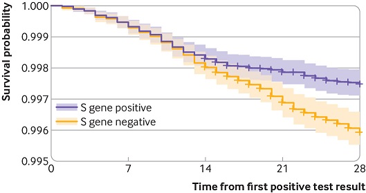 Infections with the new variant VOC-202012/1 (as measured by S gene negativity) were associated with an increased risk of death (P < 0.001) in people testing positive for covid-19 in the community. The increased hazard ratio between 1.32 and 2.04, higher than for other variants, translates to a 32% to 104% increased risk of death, with the most probable hazard ratio estimate of 1.64, or a 64% increased risk of death.