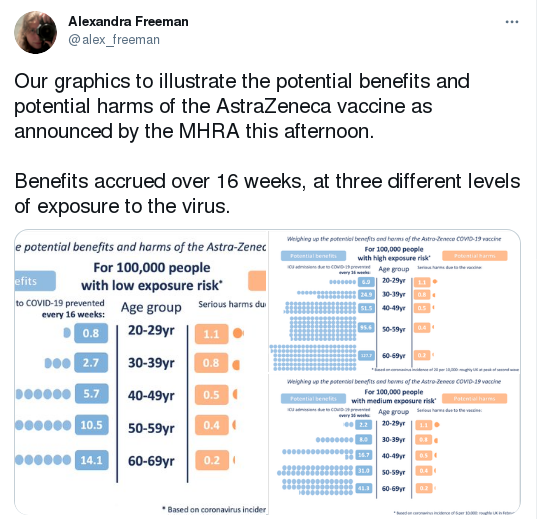 Ну, это для одной группы повышенного риска тромбоза с пониженным риском смерти от ковида - а именно, женщины до 60-ти. Но и для них все на пару порядков лучше с вакциной, чем с ковидом