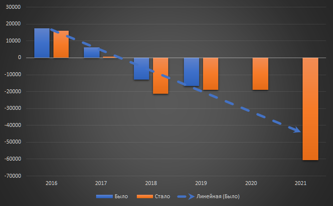 Ну вообще да. Если провести линию тренда с пика, то выходит на -44 тысячи